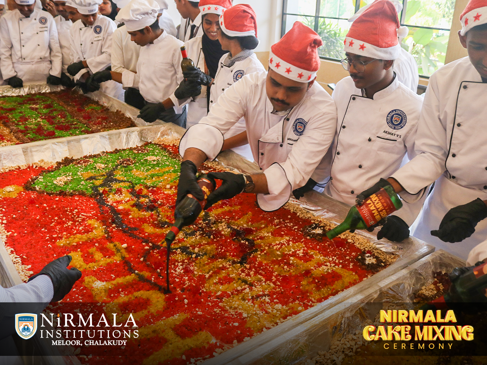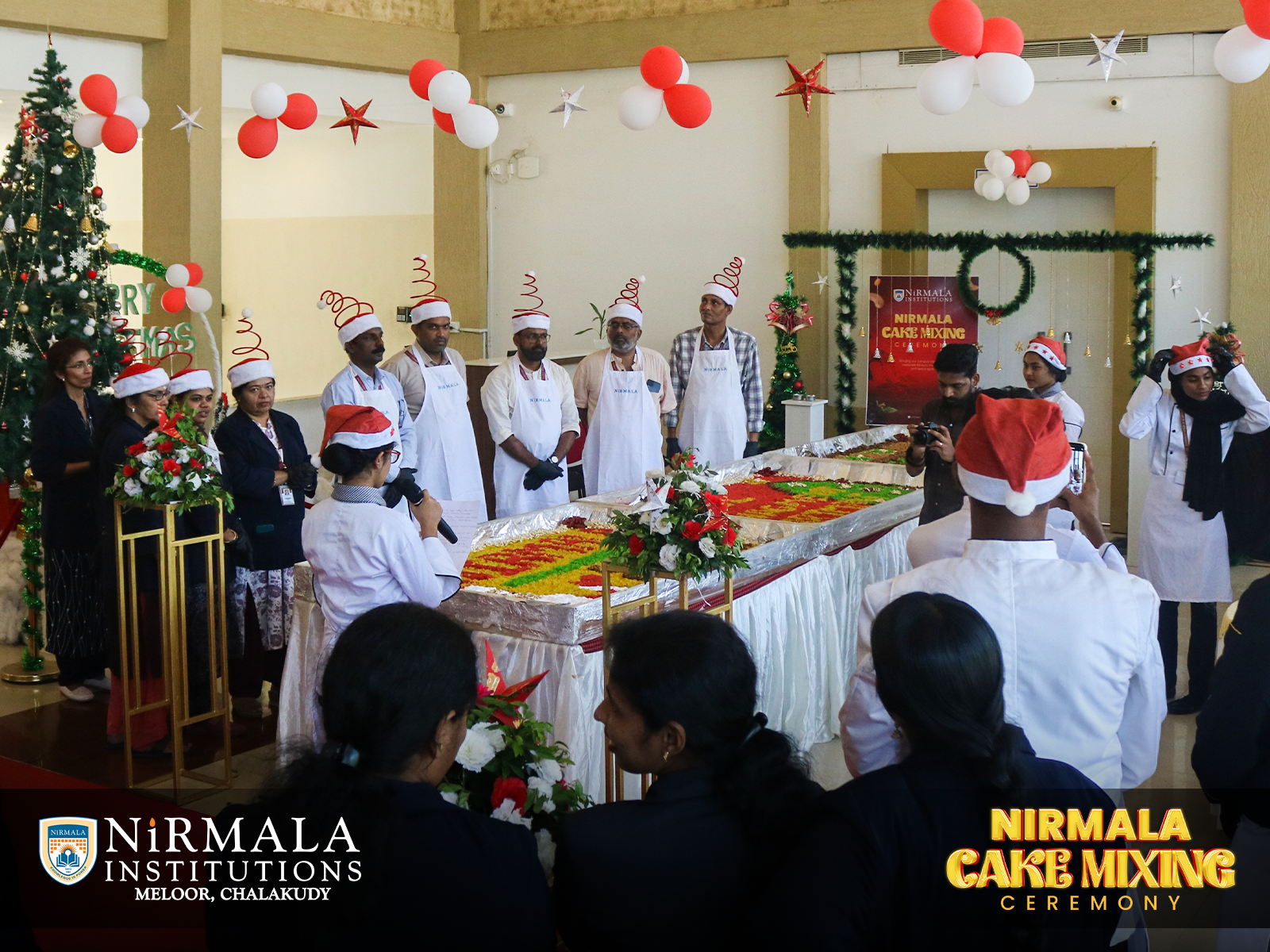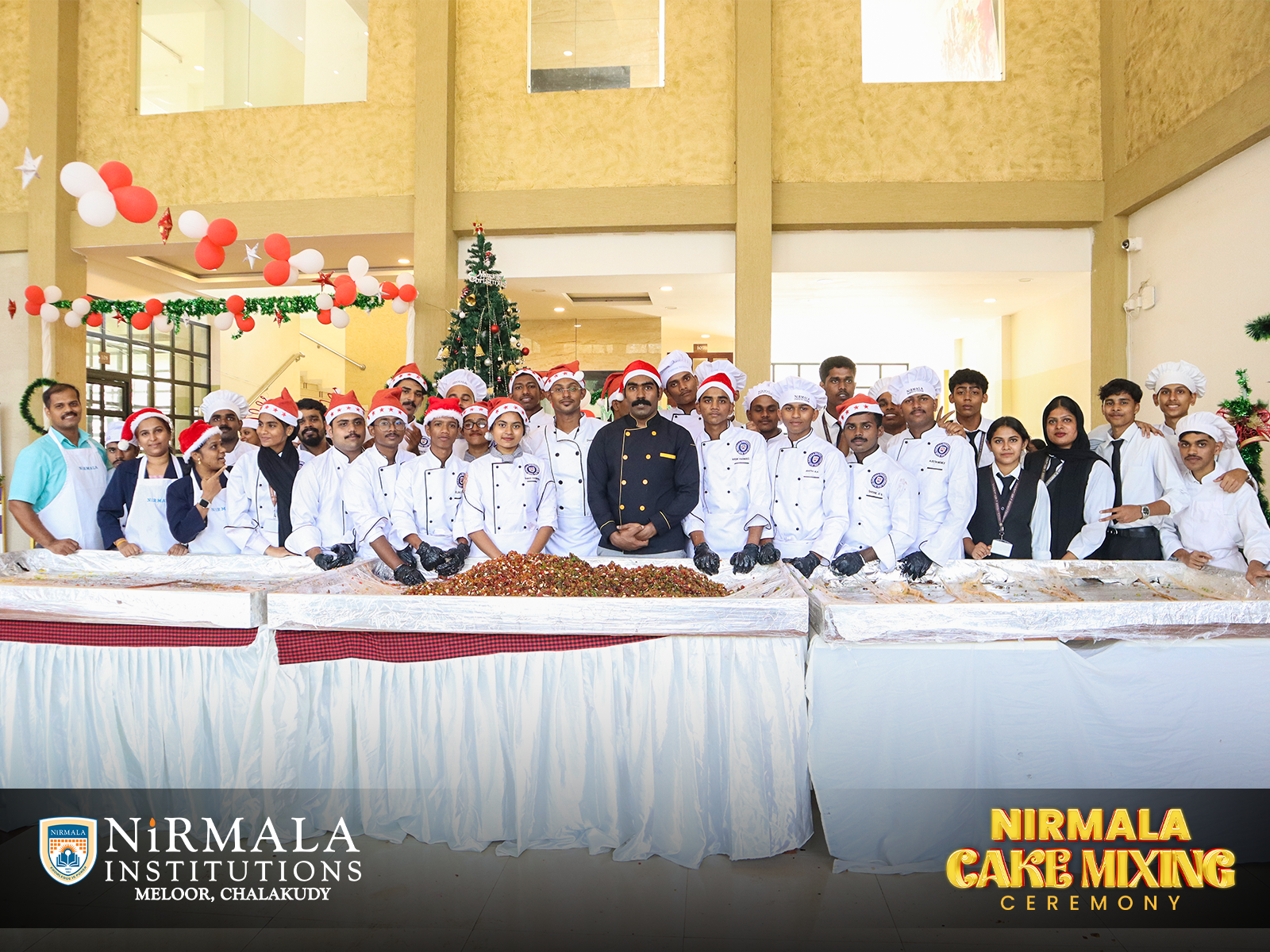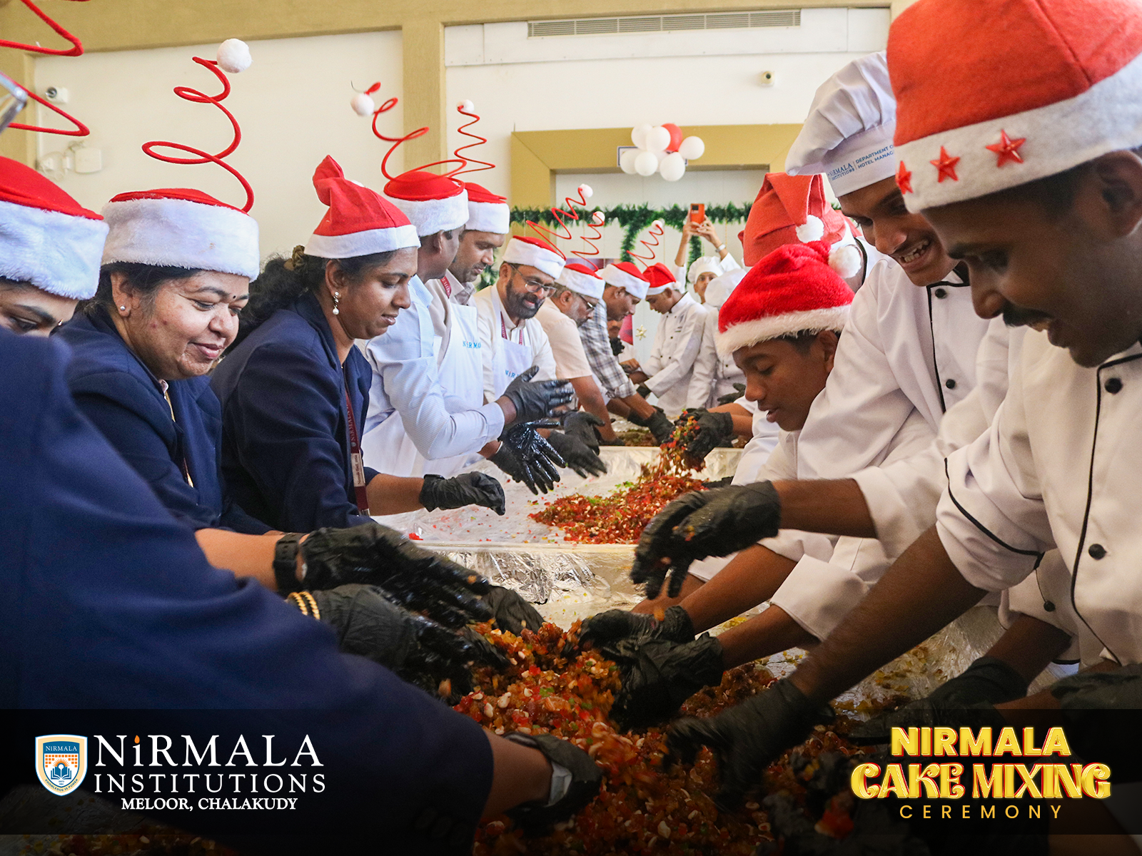 Nirmala Institutions joyfully embraced the Christmas tradition in association with the Department of Hotel Management. The Christmas Cake Mixing Ceremony was a delightful blend of rich flavours, shared joy, and festive cheer, marking the beginning of a season filled with celebration, unity, and Christmas magic.