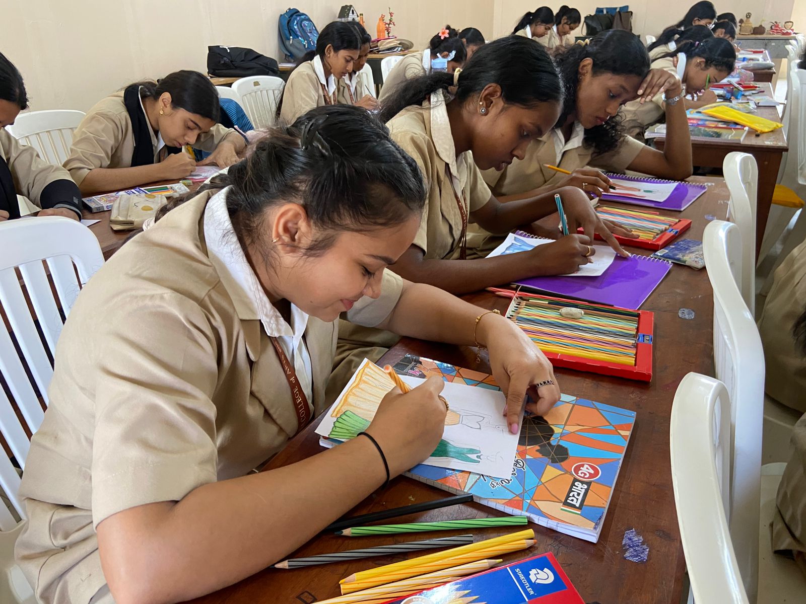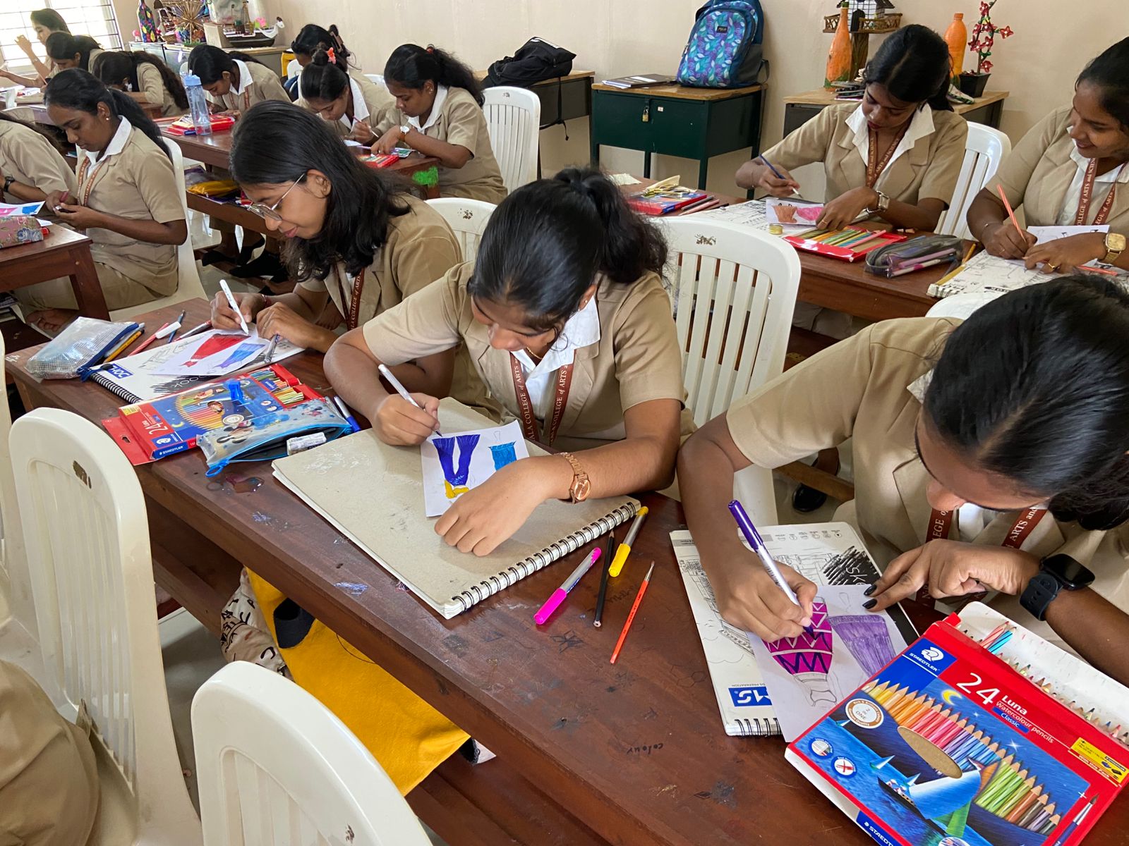 The Department of Costume and Fashion Designing organized a Fashion Illustration Jam Session on 07 January 2026 from 09:30 a.m. to 11:30 a.m. for the S2 C&FD students. The session was conducted as a creative activity aimed at encouraging spontaneous fashion sketching and artistic expression. During the session, students participated in a series of time-bound illustration exercises where they quickly sketched fashion figures, garment ideas, and styling concepts based on different mood music.